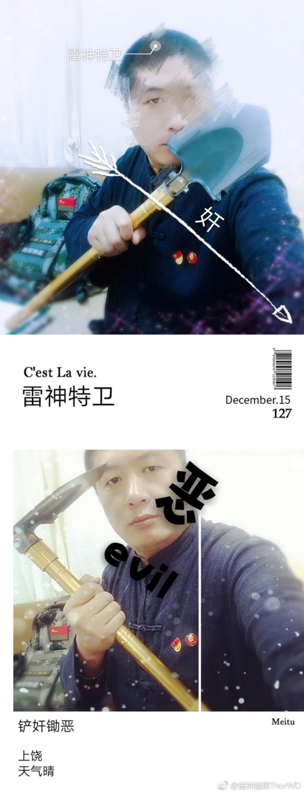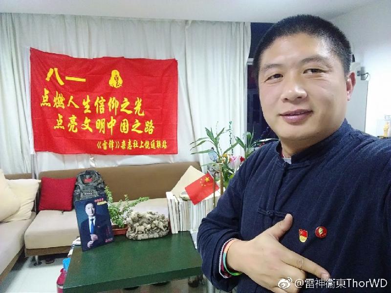 【诗句大意】东方卫士(青年)灵魂觉醒,以仁义作为人生大道,学习古今中外的文化知识,丰富愛国精神内涵,铸就钢铁意志,以坚定的步伐走上传播雷锋文化、弘扬雷神精神的道路。