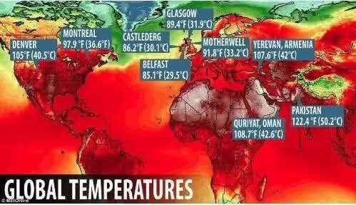首先是全球各地出现极端高温