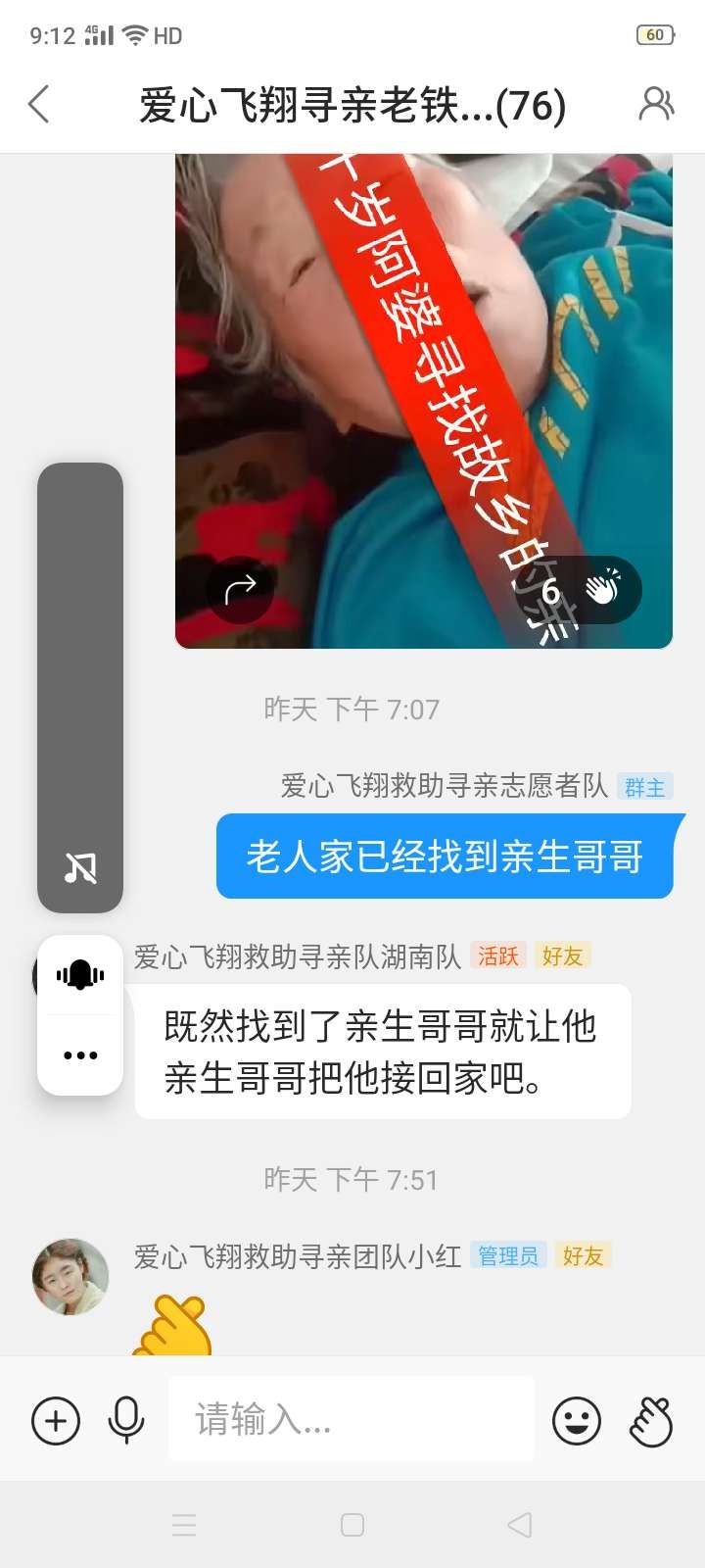 2020.2.21日,爱心飞翔救助寻亲公益团队,成功助何某(80岁阿婆)寻找到兄弟姐妹......