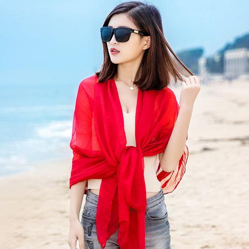 飘逸的红丝巾优雅招展