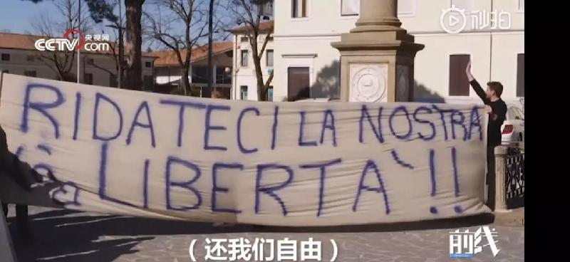打出横幅反对戴口罩,认为这是侵犯个人自由的行为