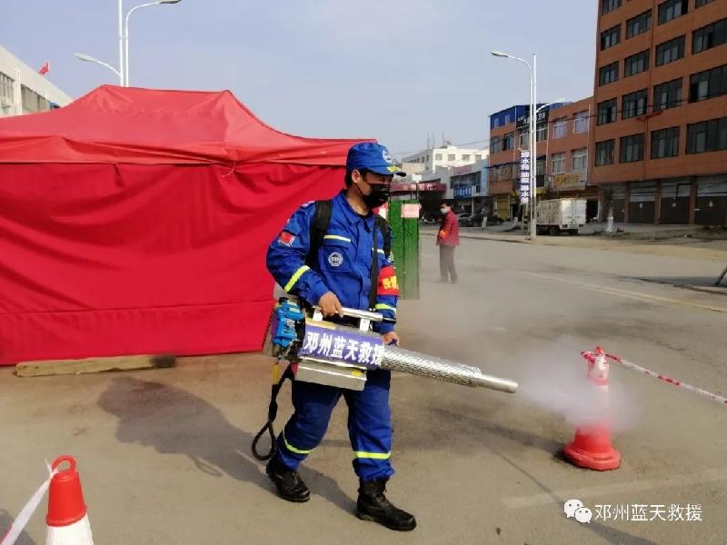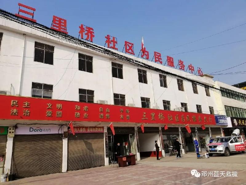 2020年3月6日,应邓州市审计局和三里桥社区服务中心的邀请, 邓州蓝天救援队从大年初二开始的消杀工作继续进行。下午14:00 邓州蓝天救援队(筹)4车、6人在队长习成果亲自现场指挥、督察组杨栋梁、装备组王景文的协助下,带领队员杨秋雨、陈范、宁琳携带消毒器材到达地点,先与市审计局单位的工作人员进行简单的接洽,就开始紧张的防疫消杀工作。