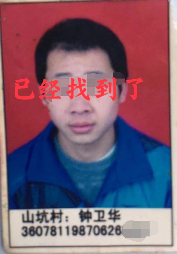 钟卫华,男,1987年6月26日出生,现年34岁,身高1米64左右,初中文化,江西省瑞金市九堡镇山坑村新店子小组16号。