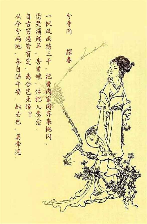 红楼一曲,悲哉今古。簌簌红颜泪,花月几时休?抱卷肠九曲。任后人自评说。天涯何处香魂杳,诗书词赋尽悲凉。怎忍落红碾作尘,聊赠一枝春轴,掩卷凝思叹芳魂。流水落花春去也,负了天上人间。