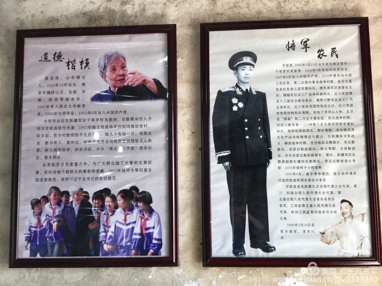 2. 江西省莲花县素有“泸潇理学,碧云文章”之美誉。花塘官厅又名莲花列宁学校,胡耀邦、彭德怀、陈毅……在这里战斗且生活过。龚全珍,开国将军甘祖昌夫人,2019年被授予“最美奋斗者”荣誉称号。
