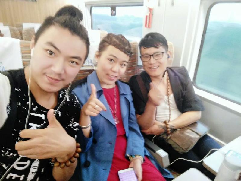 岳阳湘湘公益协会安子与著名歌手谭圳老师、著名歌手龙翔老师、著名歌手徐丹老师合影