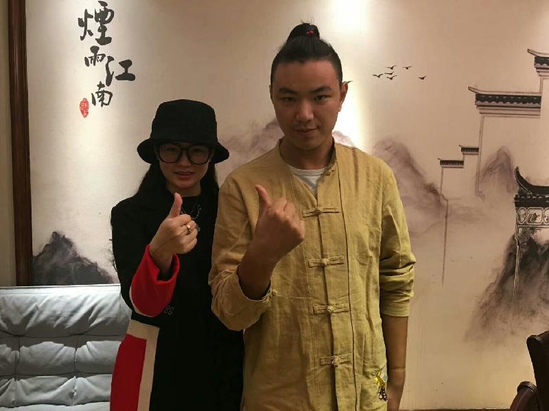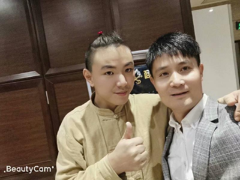 岳阳湘湘公益协会安子与著名香港武打演员梁伟章老师合影