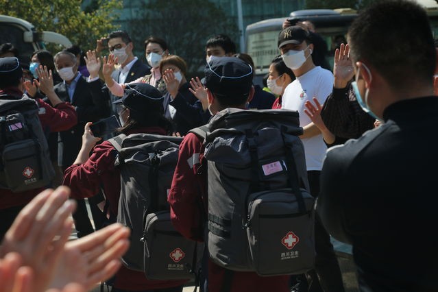 战壕同在驱时疫,大国担当日月辉。