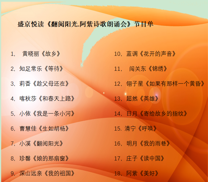 辽宁沈阳人,原名赵英莉,是东北黑土地上的一位热爱诗歌、热爱朗诵的声音行者,曾就职于外企HR及Sales管理岗位,系盛京悦读群的发起者,于2019年加入辽宁省朗诵协会及辽宁省博雅诗词学会。喜欢读书、旅行、探索未知,怀揣感恩之心聆听讴歌美好!.