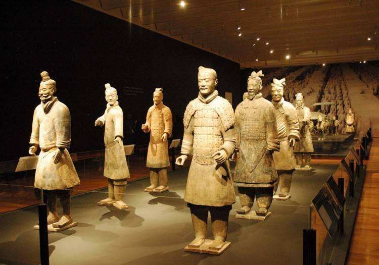 游客争观兵马俑,黄土一抔掩始君。