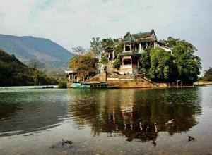 注,浮山,是贺江江中间的一座小山,因为远看就像一方盖在水面上的玺印,所以又叫玉印浮山,是贺州市著名景点。