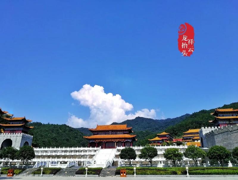 登龙椅感淙淙,彩霞生晓日,山翠染