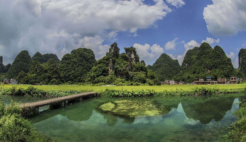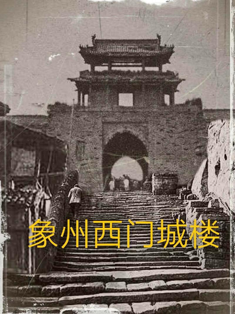 (古代象州西门城楼,清代岭南才子郑小谷为该楼西侧(临江面)题"虫二"二字,意为"風月无边",流传千 古)