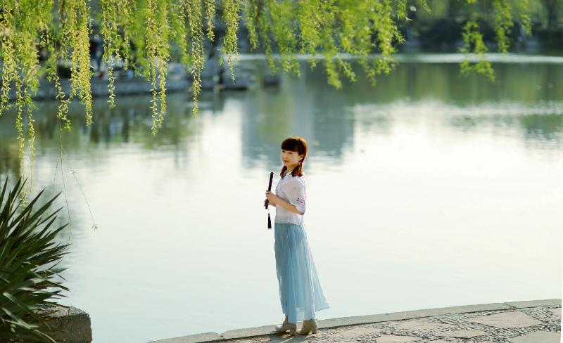 素颜出水芙蓉面,小扇执胸怀。凌波
