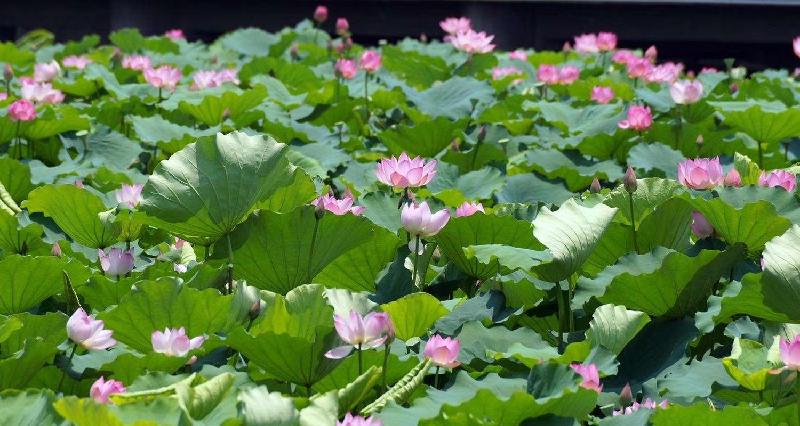 苍松挺拔碧池盛莲花
