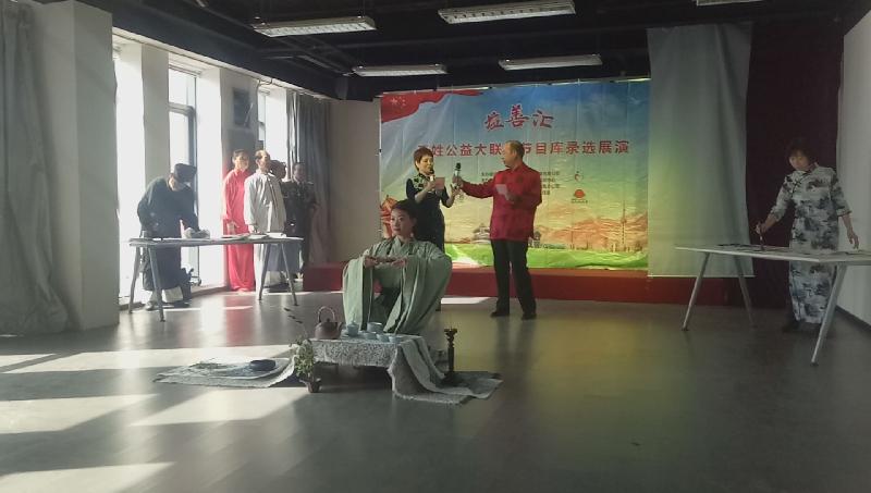 王金波、范媛媛(丫丫)朗诵;张行兰(若溪)茶道;王玉凤、王力军主唱;郑荣身、李婷武术;刘玉泉书法;邱丽国画;刘素华,北京国粹艺术团团长,刘老师为京歌版《中国脊梁》六个门类各艺术混编合成指导