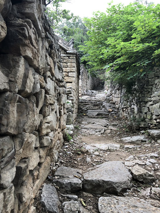 褐褐青青磐石静,村庄稳踞烟岑。柴扉不阻夏蝉音。铁根伸缝罅,构楷早成林。 大戏台前排板凳,唱腔如诉如吟。嶙峋拾尽巷幽深。溪流蒲叶立,门掩柳丝侵。语录满廊碑满院,教人呼吸芬芳。趋行我亦沐文光。仰头看桧柏,出手抚门墙。 历史何曾真漶漫,巍峨仍在尧乡。何言汲水伐薪忙。棂星门进去,渊岳未能量。