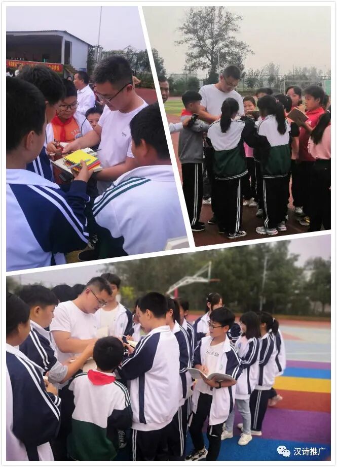 最后,王长征把自己在学生时代写的诗歌、新近结集出版的50本诗集《鹿鸣》,捐赠给该校清荷文学社的社员,并一一签名。