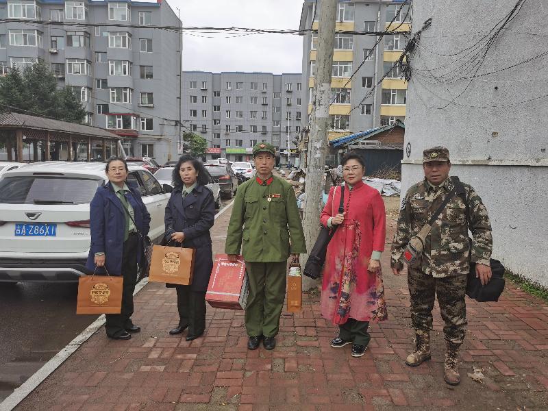 本网讯(毕盛莉)10月3日《中国普法维权法训参考》吉林办事处主任李绍倜,《中国老兵网》吉林省老兵服务中心主任、【中国网络电视一台】中国军魂栏目总制片人、《守望央视》网总编辑王振磊,《中国老兵网》吉林省老兵服务中心宣传部付部长【中国网络电视一台】中国军魂栏目记者《人民网在线》总编辑白晓,《中国老兵网》吉林风英老兵大院 院长张凤英,《中国老兵网》风英老兵大院副院长郑宪芝,《中国老兵事业发展中心》长春文工团团长杨德宝等来到了敦化市,采访、慰问96岁的老英雄王勤。