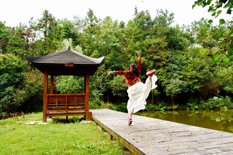 武汉:“旋”而“炫”在花乡茶谷的红衣女子
