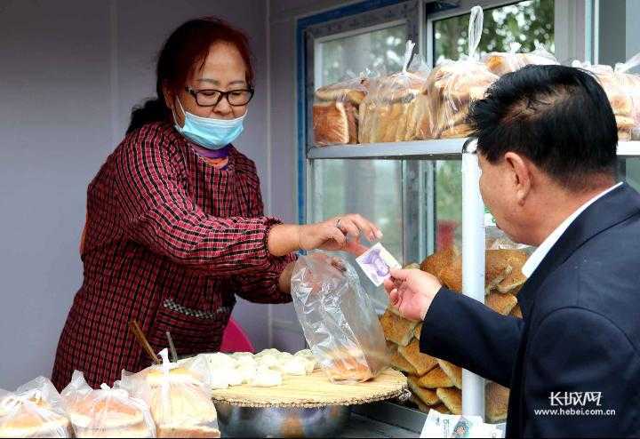 游客在天路山货大集的摊点购买烧饼。井陉县委宣传部供图