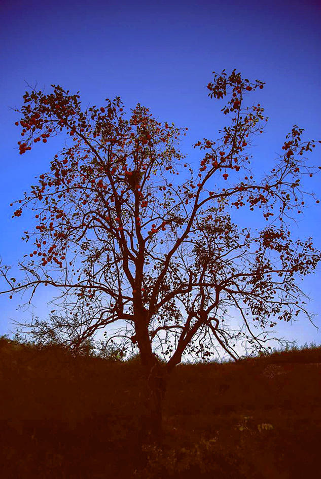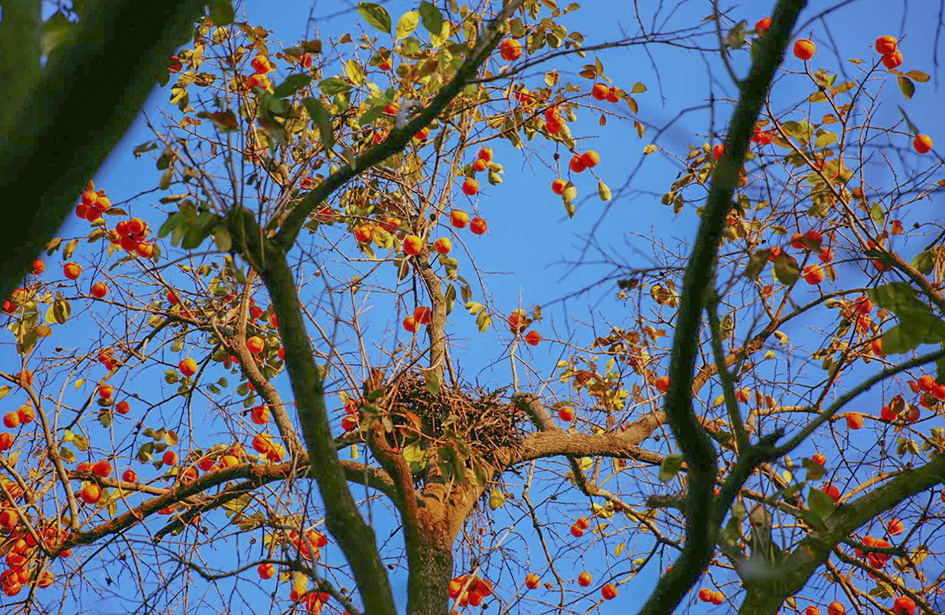红红的柿子挂满枝头。