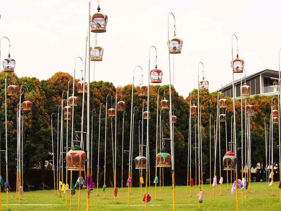 将鸟笼挂在一棵树上