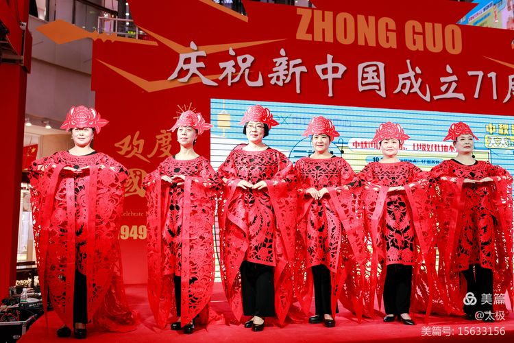 剪纸秀我中国梦,巧手剪出织女裙。邳州民间艺人刘永玲,为了向祖国70华诞献礼,为了迎接第六届全国中老年艺术家创作交流会的盛典。她苦思冥想,巧妙构思!终于设计出吉祥如意,凤穿牡丹的精美图案!耗尽几多白昼,剪出翩翩彩衣,轰动整个会场!那一抹红云伴着彩凤飘来,是东方神韵,是华夏精灵,是美丽心灵的化身!是五千年文明,是非物质文化遗产的传承!都说邳州银杏甲天下,哪如彩衣抒情怀!请欣赏在全国中老年才艺上,获得金奖的刘永玲老师,带领她的姐妹们展示,剪纸秀我爱你,中国!