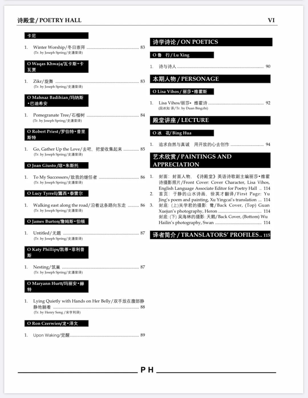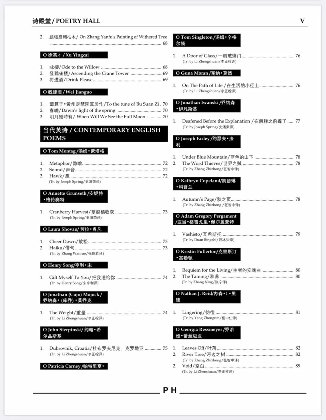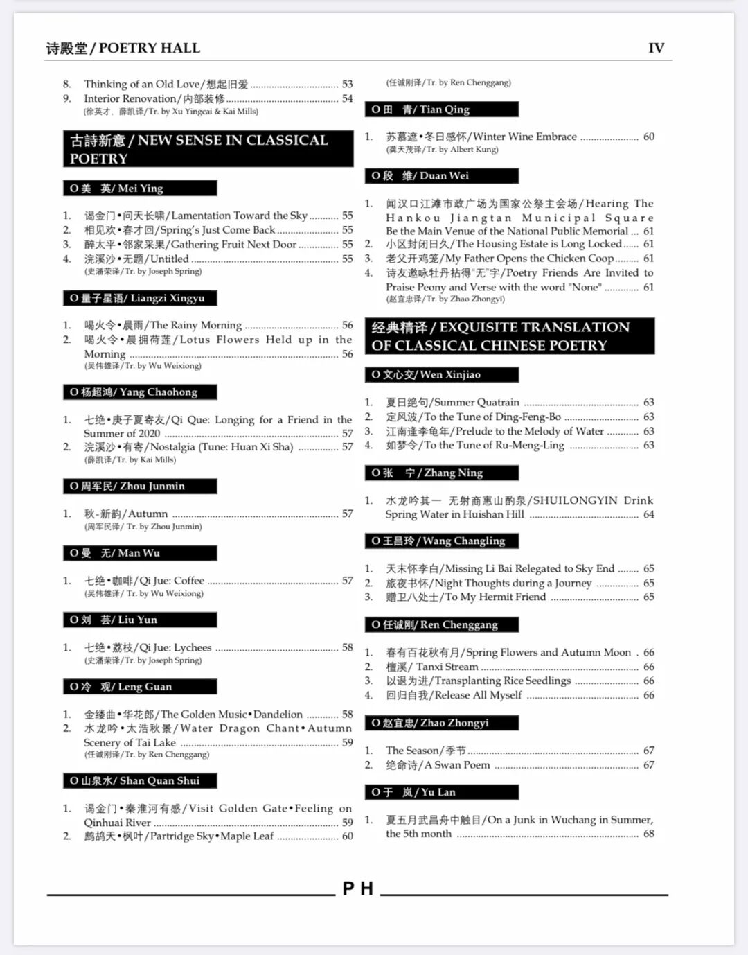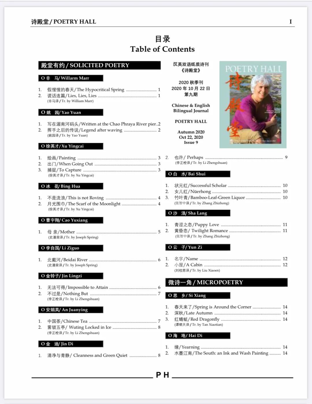 汉英双语诗刊《诗殿堂》第九期 目录