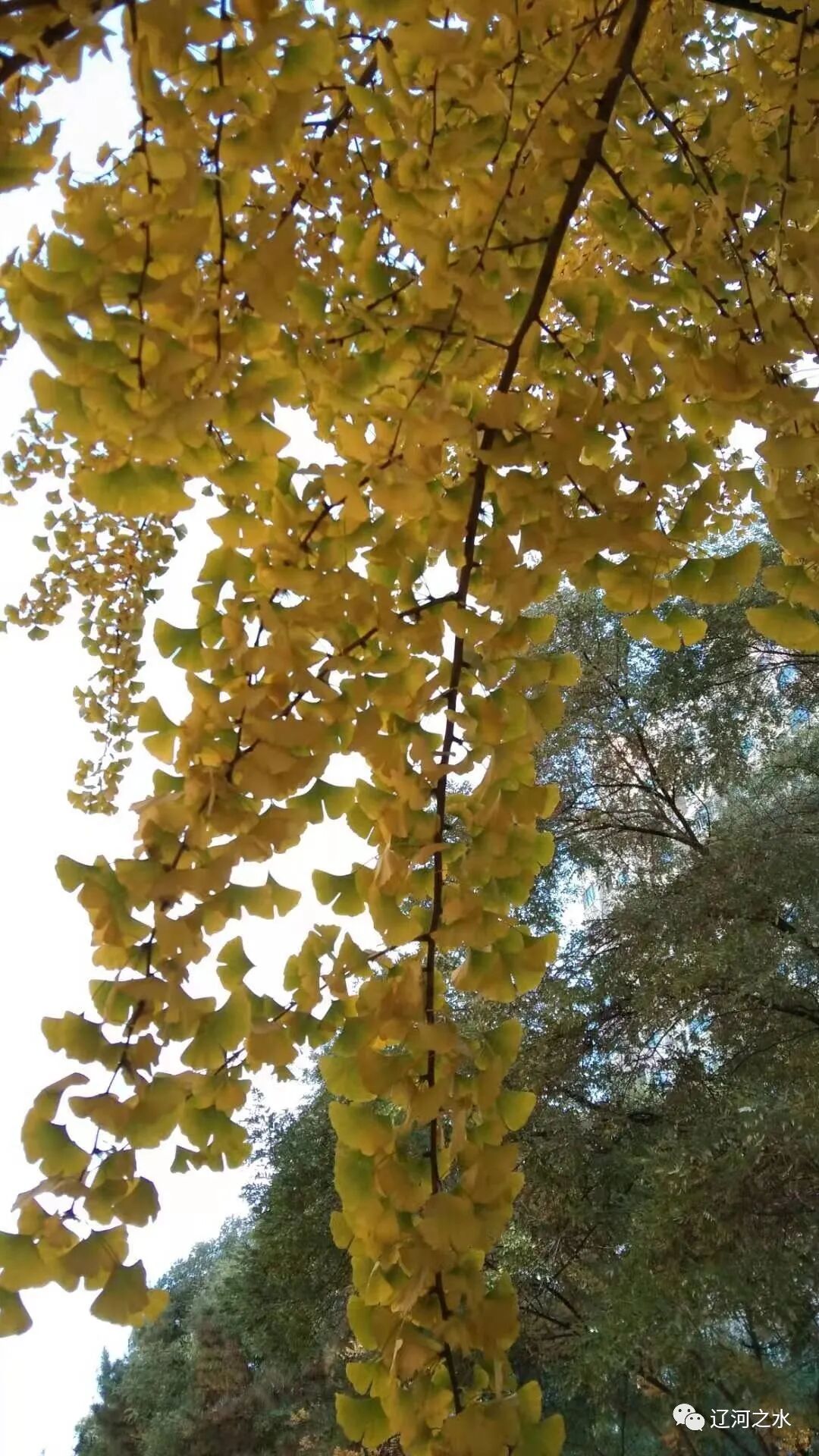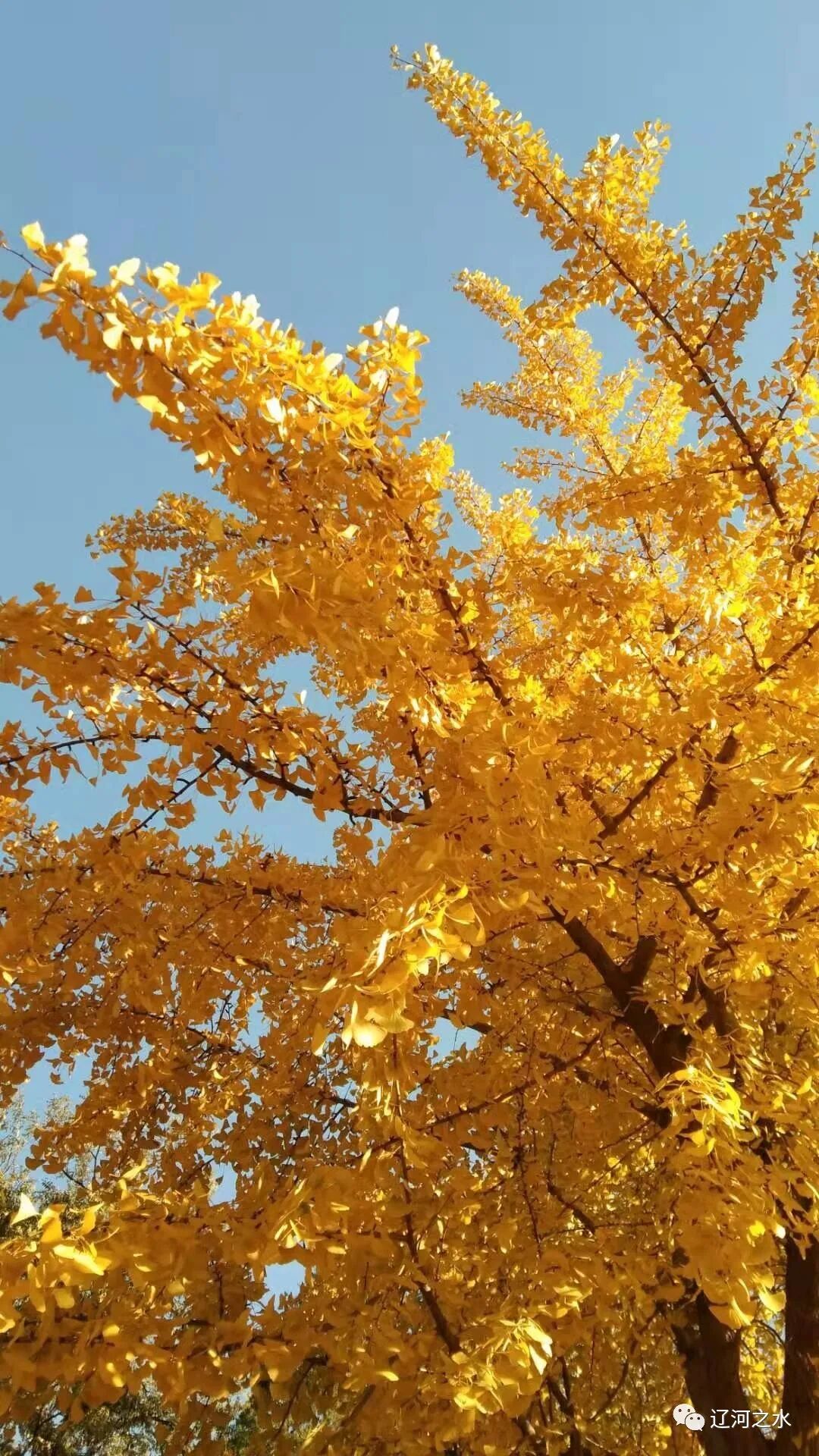 银杏金冠映朝阳, 金叶满树秋时光。 树树金黄皆秋色, 满树金叶不一样。 绿叶金边象蝴蝶, 深黄浅黄蝶成双。 碧绿蝴蝶凌寒舞, 金黄彩蝶更漂亮。 各色彩蝶落满树, 風吹蝶舞闪金光。 参天大树街边立, 艳丽金冠更辉煌。 树树如花金秋景, 秋美如诗景无双。 霜降变天昨夜寒, 满树金叶全落光。 朔風寒冷秋光尽, 今日立冬天更凉。 再赏秋色迎春到, 万山红遍又秋光。