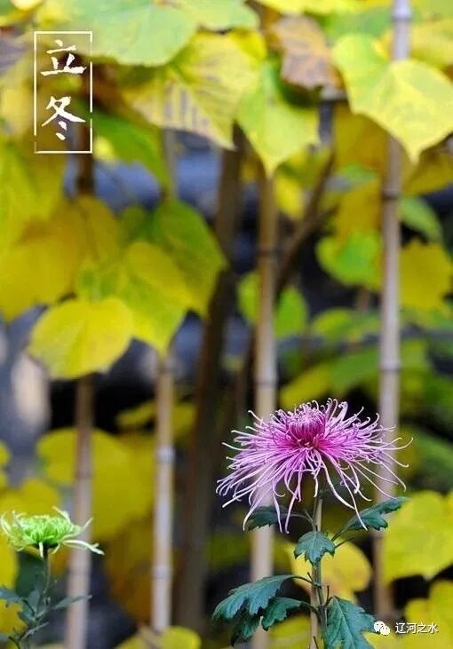 秋去冬来芳翠尽, 草黄水清朔風冷。 四野无花无飞雁, 秃树残叶迎朔風。 今日立冬缓缓来, 岁月花季去匆匆。 黄叶丹楓瞬间过, 半轮明月伴孤灯。