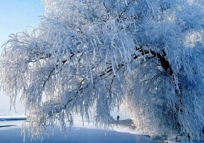 银枝素裹雾朦胧,碧树琼花韵景浓。