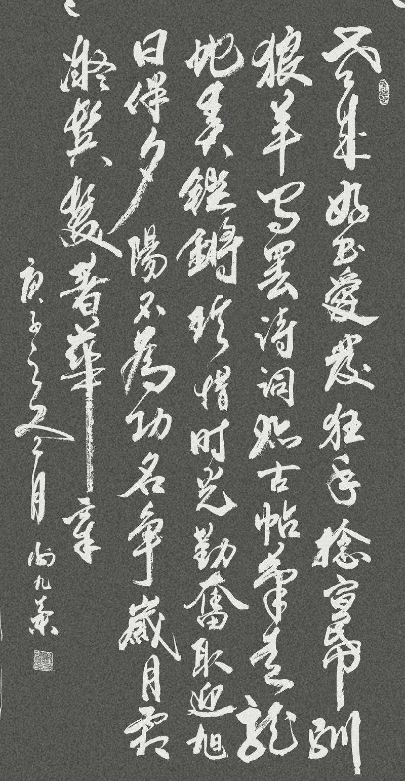 老来好书爱发狂,手捻宣纸驯狼羊。