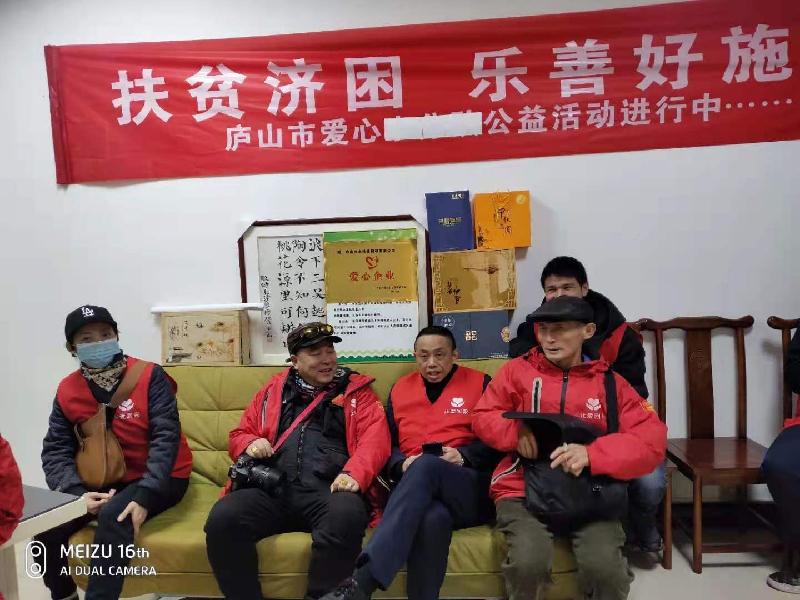 参加今天捐赠仪式活动的志愿者有:九江市志愿者服务总队杨毓华、陈敏、陈梅生、封晓林和封晓林的儿子、杨丽云、张广珍、陈建亮以及庐山市爱心蓝协会的志愿者们。
