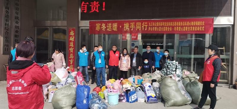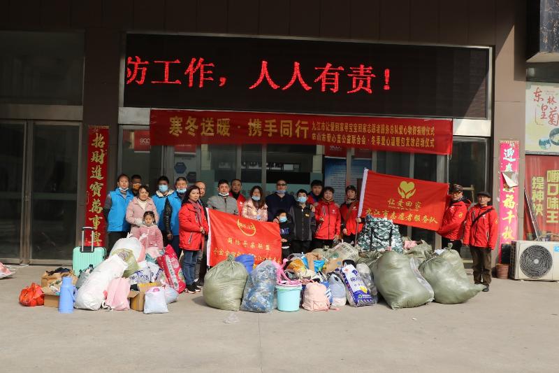 12月12日上午10:00,九江市让爱回家寻宝宝回家志愿者服务总队党支部、团支部联合九江市职业大学的部分爱心大学生携手庐山市爱心蓝协会开展“寒冬送暖,携手同行”爱心物资捐赠仪式主题活动在庐山市举行。