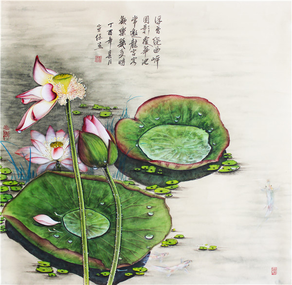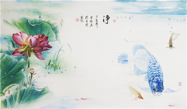 2、赏心悦目:愉悦画派的作品,尤其是荷花和鱼堪称一枝独秀,其笔下的荷花飘逸淡雅、超凡脱俗,给人一种含蓄的内在的韵律美。其鱼形神兼备、顾盼生情、栩栩如生、活灵活现。整体造型严谨、运笔老道、设色明快,是心灵的情感抒发。每幅作品都具有不可模仿的独创性,达到天人合一、赏心悦目的效果,让观者与作品产生强烈共鸣和心灵的震撼。