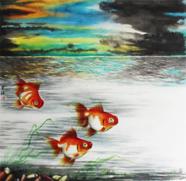 其作品有三大特征:一是工兼写的结合,绘出了自然之美;二是融入了西方油画技术,展现了新的艺术之美;三是植根中国传统文化和美德,继承和弘扬了社会主义核心价值观,表现了时代精神。其将中国鱼文化和中国花鸟画文化进行融合,题材广泛、灵巧多变、情趣交融、雅俗共赏、独抒性灵、不拘格套,是具有特色的祖国优秀文化之一。尤其是其对鱼的描绘是从生活中汲取的,通过细致的观察和缜密的思索,从鱼的形态、结构和动态、与水的关系,直到鱼的习性、生活规律,无不细腻,无不丝丝入扣。在大量鱼的形象基础上加以笔墨的变化,并努力追求神韵的畅达,以此探索中国画的神形兼备,栩栩如生的意境,可谓是大音希声、大象无形。