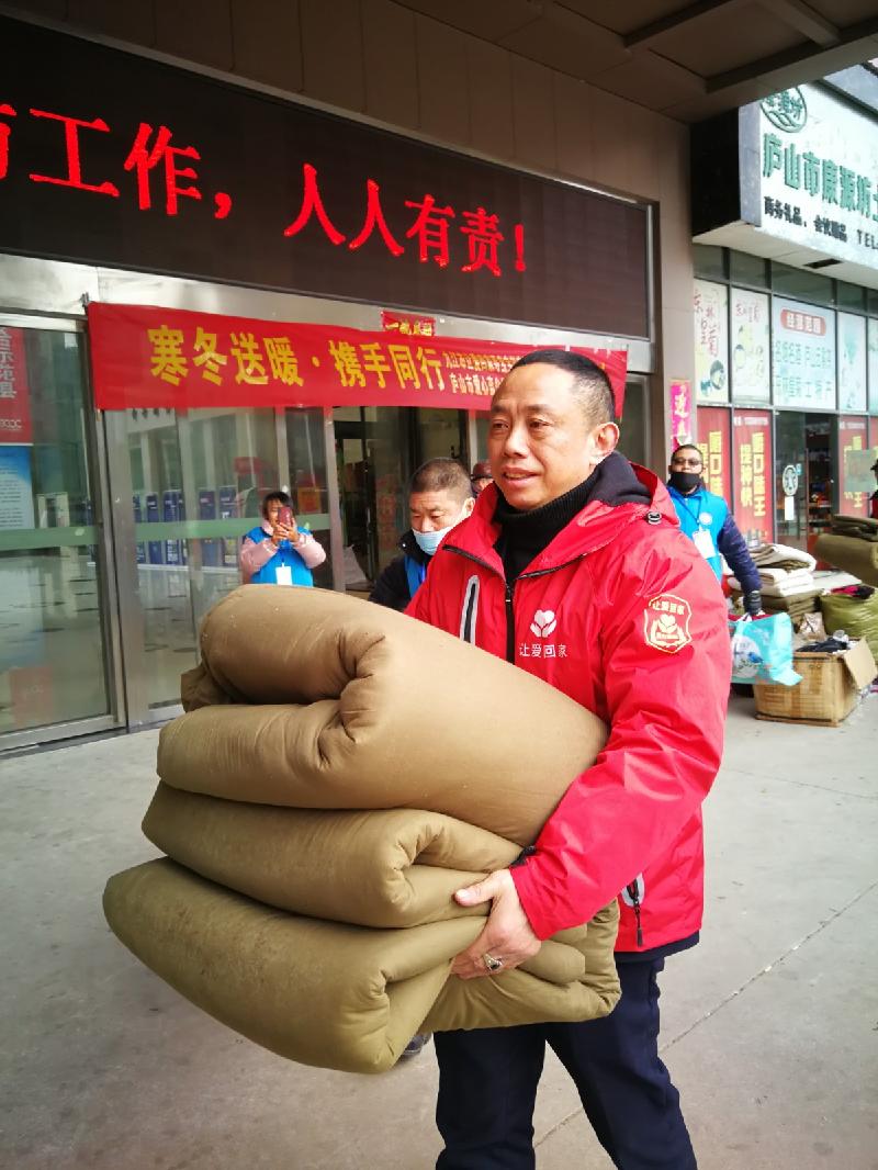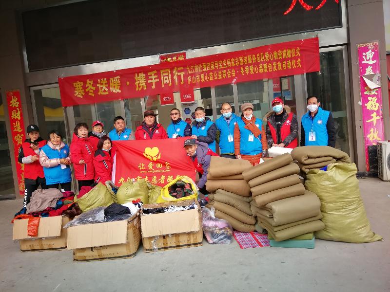 12月16日早上,当锦帛风尚服装店老板娘陈秀娟女士、部分社会各界爱心人士和九江市职业技术学院的爱心大学生,得知庐山市有许贫困学子和孤家寡老人家庭生活十分困难的情况后,在九江市让爱回家寻宝宝回家志愿者服务总队的再次倡议下,便踊跃捐赠羽绒服和其它冬装,爱心大学生捐赠棉被,为庐山市贫困学生和孤家寡人送温暖献爱心,短短一天,收到锦帛风尚服装店老板娘陈秀娟女士,捐赠全新的羽绒服、春秋装和冬装、部分社会各界爱心人士捐赠共计16蛇皮袋、5纸箱;棉被20床。