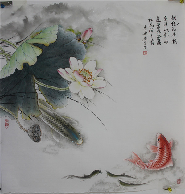 2、赏心悦目:愉悦画派的作品,尤其是荷花和鱼堪称一枝独秀,其笔下的荷花飘逸淡雅、超凡脱俗,给人一种含蓄的内在的韵律美。其鱼形神兼备、顾盼生情、栩栩如生、活灵活现。整体造型严谨、运笔老道、设色明快,是心灵的情感抒发。每幅作品都具有不可模仿的独创性,达到天人合一、赏心悦目的效果,让观者与作品产生强烈共鸣和心灵的震撼。