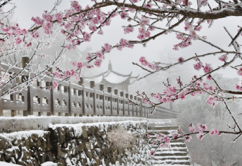 银装素裹绽丹红,铁骨冰肌唱大风。