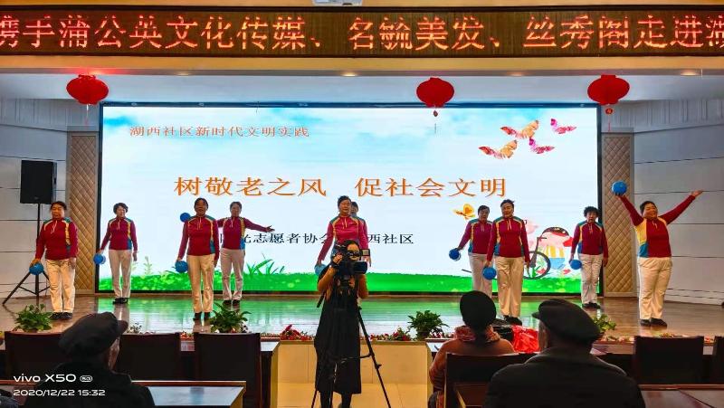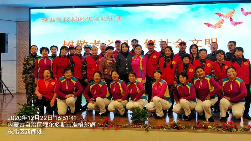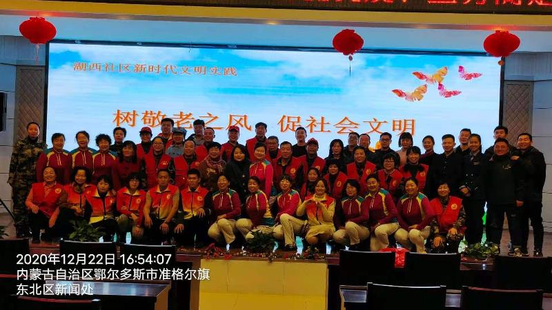 为响应党的十九大精神,大力弘扬中华优秀传统文化、毛泽东思想,丰富人们的精神生活,2020年12月22日下午,东望内蒙古鄂尔多斯市准格尔旗课堂11名志愿者和工作组15人共计26名志愿者,在课堂承办人高雪梅老师的带领下, 应准格尔旗迎泽街道湖西社区邀请,与阳光志愿者协会共同参加“志愿者走进社区常态化服务”。参加落实新时代文明实践“树敬老之风 促社会文明”的义工、义演等公益活动。
