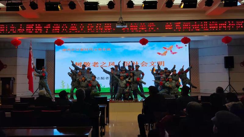 随后,东望志愿者一曲大气磅礴、气势恢宏的《长征》情景剧展示给父老乡亲们,当“雪皑皑”乐曲响起,红军历尽千难万险艰难前进时,场内鸦雀无声,人们沉浸在伟大领袖毛主席带领下的中国工农红军不怕远征难、万水千山只等闲的历史回顾感受之中,先烈们为了中国革命胜利不怕牺牲、前赴后继、不屈不挠的大无畏革命英雄主义和革命乐观主义精神。