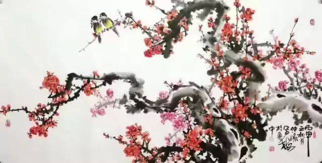 花鸟画,根据不同的技法分为三大主题:工笔、写意、兼工带写。工笔花鸟画主要以勾线、晕染、填色为上,造型严谨、工整;而写意花鸟画则采用水墨淡彩,重意境,讲笔墨。兼工带写介于工笔和写意之间,形态逼真。王萧东先生的花鸟作品属于写意花鸟画系列,是他创作大思想、大境界作品疲惫之余放松身心的一种手段。画面非常灵活生动,能运用多种语言能力,采取跨形式、跨技法的新路子,打破传统写意花鸟画的惯例。构图非常严密,笔墨技巧精湛,意趣深刻,具有强烈的精神性和深度的哲理性,艺术处理上更是独具匠心,已形成自己独特的语言方式。他的画,无论是水墨、重彩、形式和技法完全能根据画面需要进行排列组合,历史、文化视野非常宽泛。能用生机、生气表达自然万物的生命本质;透过花鸟形象传递社会、时代气息、情调和情趣。把奔放的思想和时代的情感倾泻在花鸟艺术中,人与自然,人与生命通过绘画这种特殊的表达方式得以展现,达到了天人合一的生命气象。他的目光已穿越古今中外,经过传统技法吐纳后及时吸取了西方绘画、日本画、装饰画、现代画等元素精华。绘画时,大胆的使用新材料、新颜料,以改国画中材料、颜料的单一,在宣纸和亚麻布上同时采用油画颜料和丙烯交替作画,画面内容丰富多彩,闪烁着明亮的光芒。花鸟的灵动,古陶瓷的厚重、典雅……整个画面看起来,艳而不俗,鲜而不佻,亮丽而不失庄重,既能近赏,又能远观,起到了“远看颜色近看花”的作用。社会主题非常宽广,符合现代人的审美情趣,具有大视野、大境界,大花鸟意识。