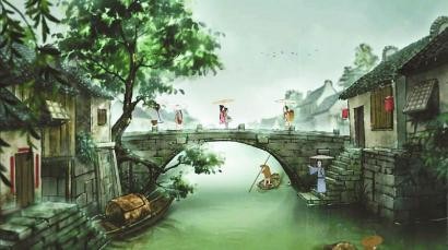 一咏一觞人缱绻,飘然驻足水云间。
