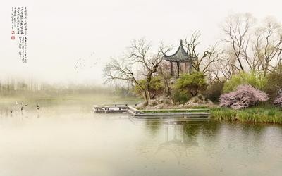 游目亭台半掩遮,万千垂柳向风斜。