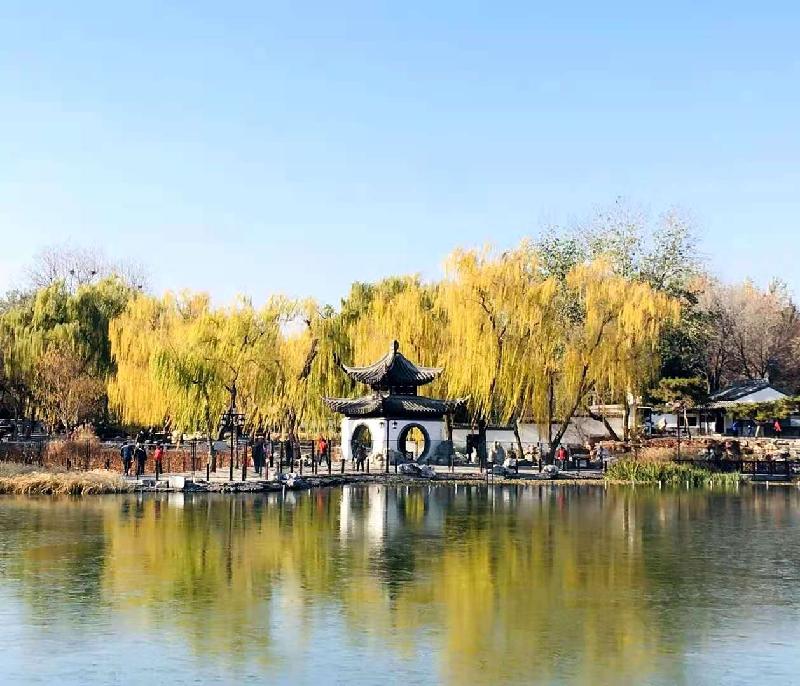 冬去寒销柳色青,鲜花已绽丽芳亭。