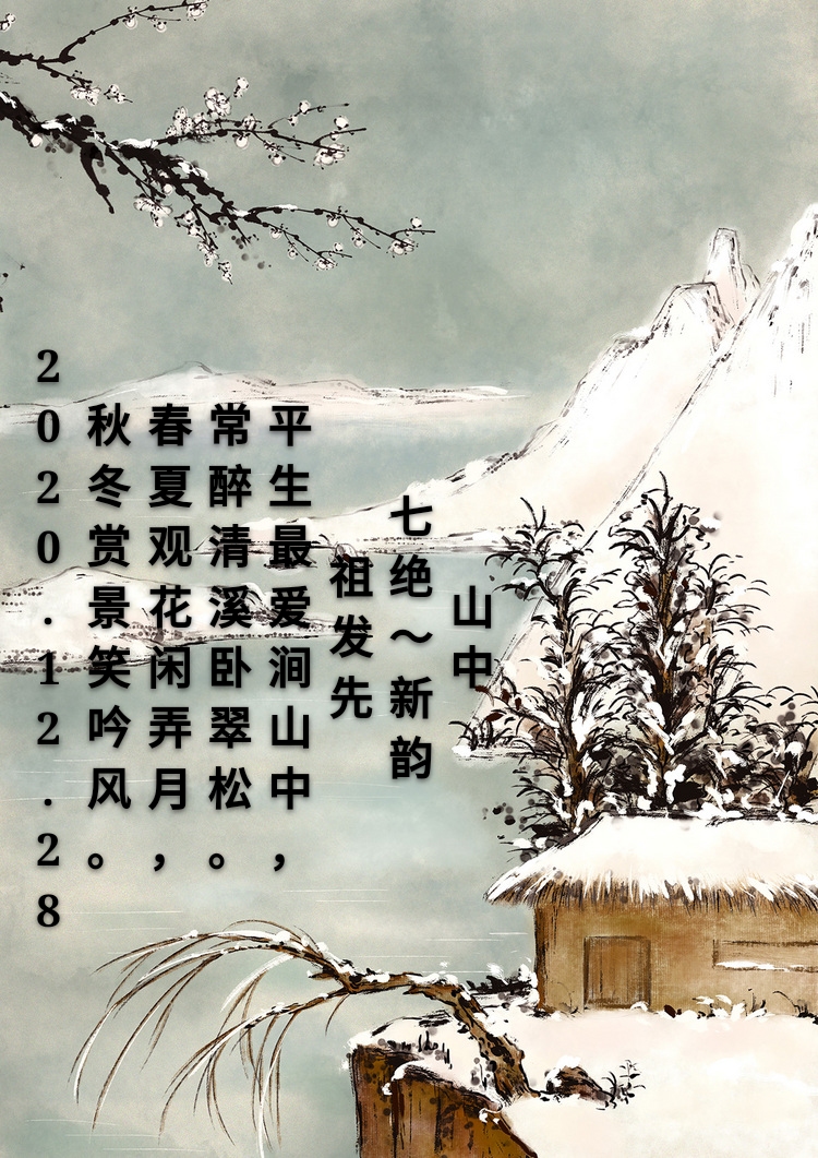 \ 山中 七绝~新韵 祖发先 平生最爱涧山中, 常醉清溪卧翠松。