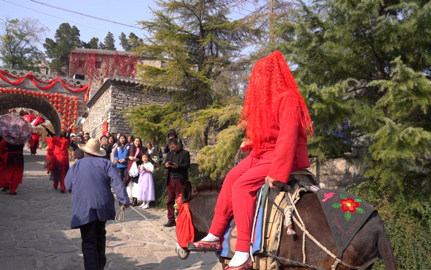 2020年5月,吕家村实景剧《梦回吕家》开演,其中第一幕“门楼迎亲”,需要一头驮新娘子的毛驴。以前家家户户养牲畜,用驴不是事儿。但近几年,扶贫路修到了田间地头,凡是带轮儿的都能开进去,长蹄儿的倒成了累赘,村民便一窝蜂把驴卖了。祖祖辈辈离不了的驴,眼下竟成了稀罕物。