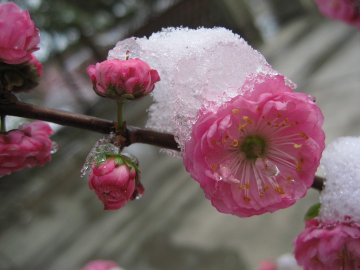 南枝忽见梅花朵,瑟瑟风中沐夕霞。