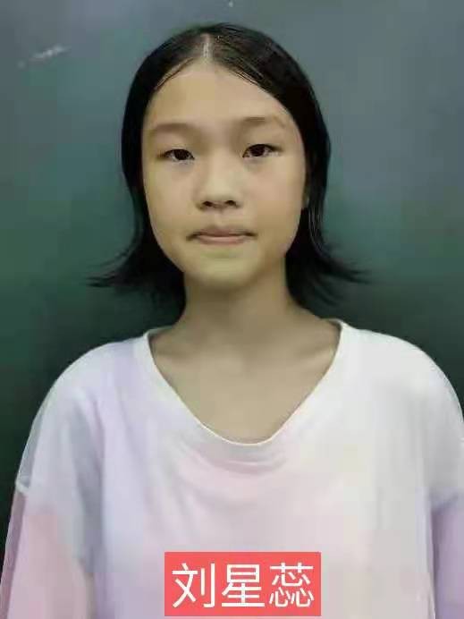 刘星蕊,女,家住版石镇街,现年13岁,身高约158cm,披肩头发。